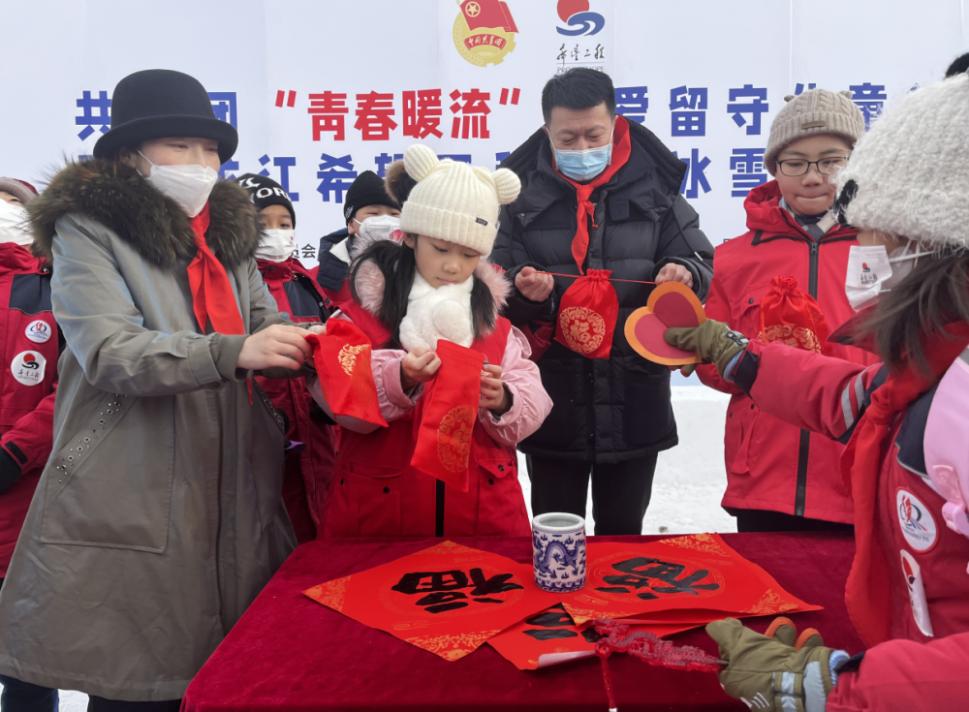 辭舊迎新,年歲并進。儀式上,留守兒童代表為嘉賓們佩戴紅領巾,表達了孩子們由衷的謝意。在新春佳節(jié)到來之際,省青聯(lián)委員為留守兒童精心準備了愛心新年禮包,嘉賓們現(xiàn)場發(fā)放了由黑龍江省少工委為孩子們準備的新年新書包和愛心文具。這份用愛填滿的禮包是對孩子們的祝福和對未來的美好期許。