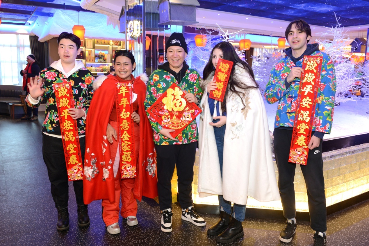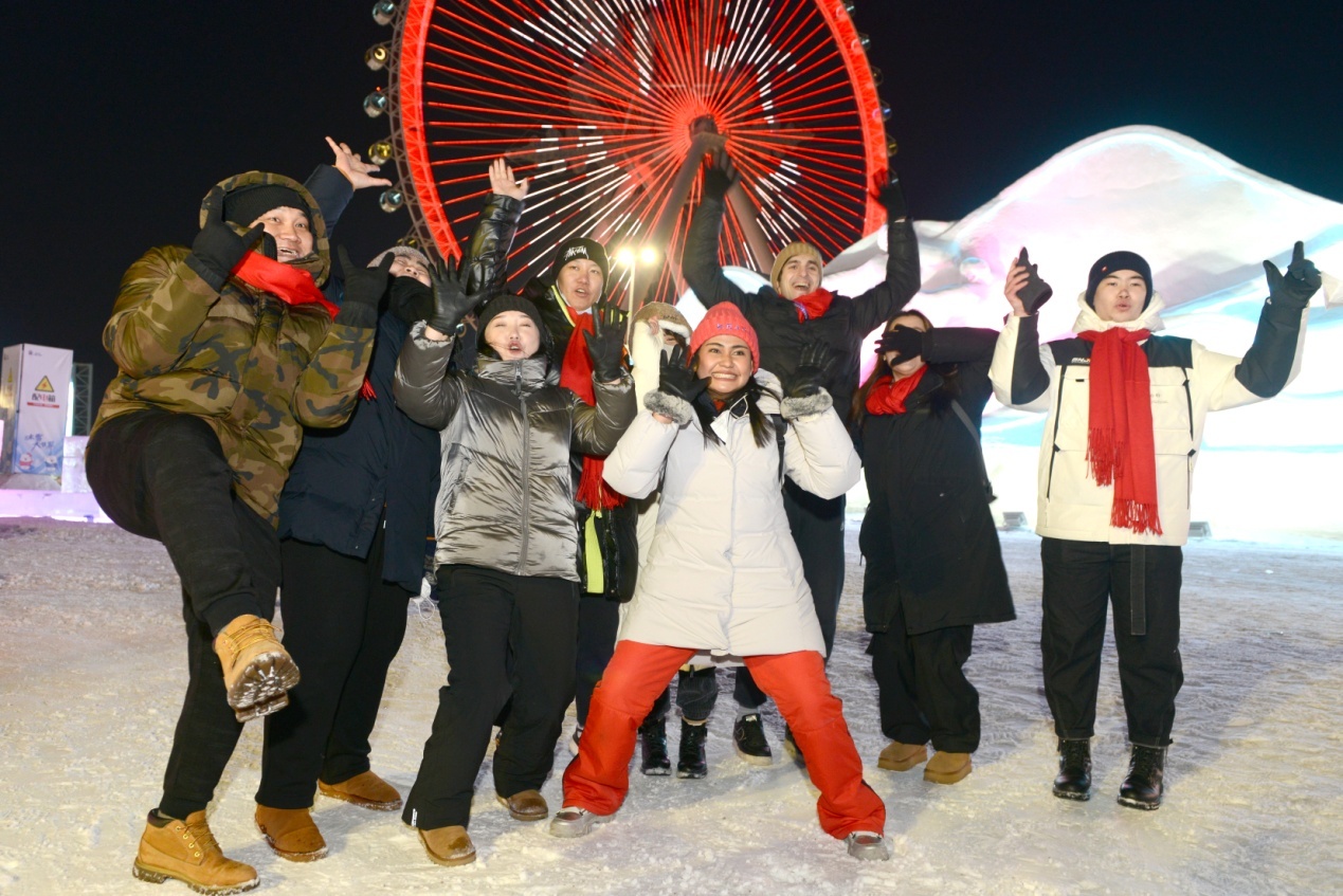 當(dāng)天上午,在雪博會(huì),來自黑龍江大學(xué)的各國留學(xué)生代表與中國青少年結(jié)對(duì)互動(dòng),互贈(zèng)新春禮物,表達(dá)對(duì)即將迎來的兔年美好祝福。中外青少年小手拉大手,共游太陽島雪博會(huì),鯉魚躍龍門、圓夢(mèng)啟程、雪冠博覽等雪雕雪景讓大家流連忘返。世界各國青少年一起雕刻“宇航員”雪雕,送上春聯(lián)祝福語,體驗(yàn)了中國傳統(tǒng)文化和濃濃的年味,表達(dá)了對(duì)世界文化共融的美好祝愿。