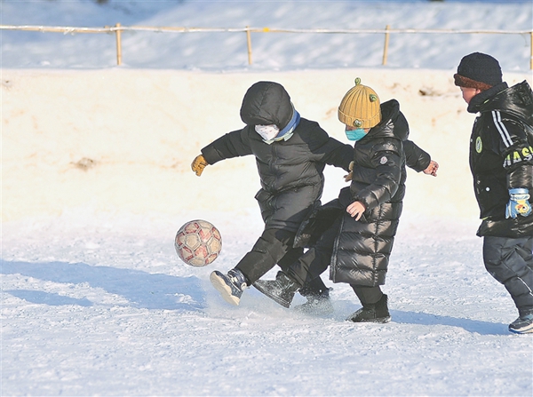 近日,在哈爾濱市道里區(qū)體育公園內(nèi),市民和游客齊聚滑冰場(chǎng),孩子們你追我趕,叫喊聲、歡笑聲不絕于耳。踢雪地足球、抽冰尜、玩雪滑梯、堆雪人……家長(zhǎng)孩子一起“撒歡兒”,快樂解壓。