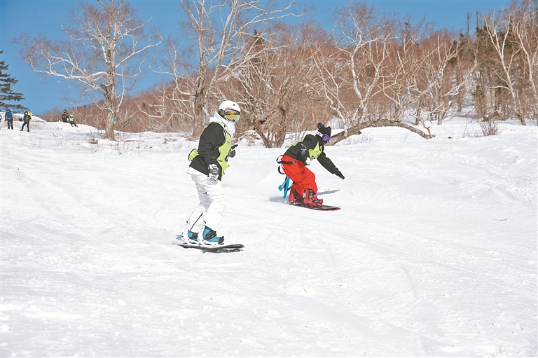 隨著一聲令下,來(lái)自哈爾濱的白華、杭州的張寒麒兩名女子單板滑雪選手一躍而起,風(fēng)馳電掣沖向終點(diǎn)?!拔曳浅O矚g雪鄉(xiāng),尤其是有粉雪的時(shí)候特別美,我希望每年能來(lái)三次,更希望能夠參加下一次野雪追逐賽?!钡诙蝸?lái)到雪鄉(xiāng)滑雪的杭州女孩張寒麒深深地被雪鄉(xiāng)吸引。