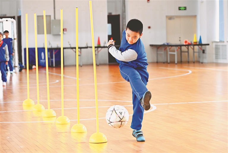 在首日訓(xùn)練營上記者看到,孩子們在教練員的指導(dǎo)下,先進(jìn)行熱身訓(xùn)練,原地高抬腿、拉伸、活動關(guān)節(jié)后,進(jìn)入足球基本訓(xùn)練環(huán)節(jié)。孩子們被教練員分成四組,每組進(jìn)行折返跑,運(yùn)球過桿、射門等專項(xiàng)素質(zhì)、專項(xiàng)技術(shù)訓(xùn)練。訓(xùn)練中,教練員隨時(shí)糾正孩子們不標(biāo)準(zhǔn)的動作,并對每個(gè)孩子進(jìn)行綜合素質(zhì)評分。最后,孩子們被分成兩組進(jìn)行小場地對抗比賽,剛才還有板有眼進(jìn)行訓(xùn)練的孩子瞬間變成足球小將,如脫韁的野馬在場地上奔跑、拼搶,盡情體驗(yàn)校園足球帶來的專屬快樂。比賽結(jié)束后,孩子們意猶未盡,對這種形式的足球訓(xùn)練營紛紛點(diǎn)贊,并對接下來的培訓(xùn)課充滿期待。