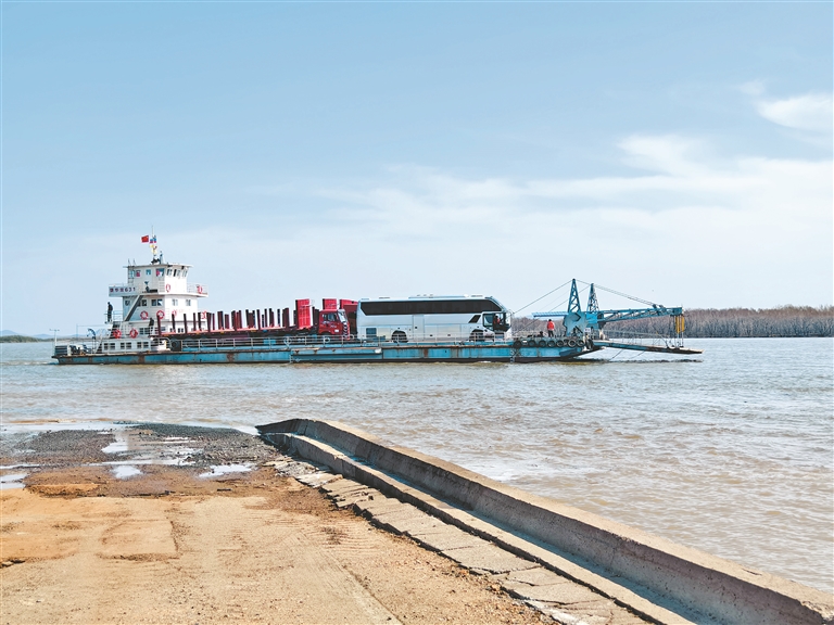 8時(shí),首班輪渡船乘載著一輛中國(guó)客車和四輛中國(guó)貨車,經(jīng)饒河口岸夏季碼頭出境駛向俄羅斯波克羅夫卡口岸碼頭,標(biāo)志著饒河口岸明水期客貨運(yùn)輸正式通關(guān)。