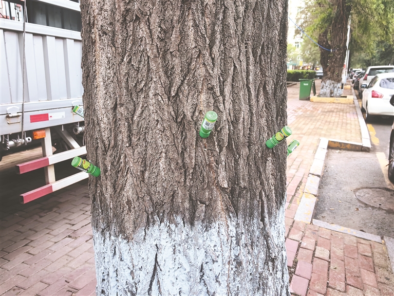 為了治理這些惱人的飛絮,哈市各區(qū)園林部門會對主城區(qū)一些點位的楊樹和柳樹進行飛絮防治。工作人員在樹干上打孔,然后將主要成分為赤霉酸的藥劑輸入樹體內(nèi),雌性楊樹和柳樹花芽的形成就會受到抑制,從而避免飛絮產(chǎn)生,抑制明年產(chǎn)生飛絮。哈市飛絮嚴重的區(qū)域主要集中在道里、道外、南崗和香坊等老城區(qū)。