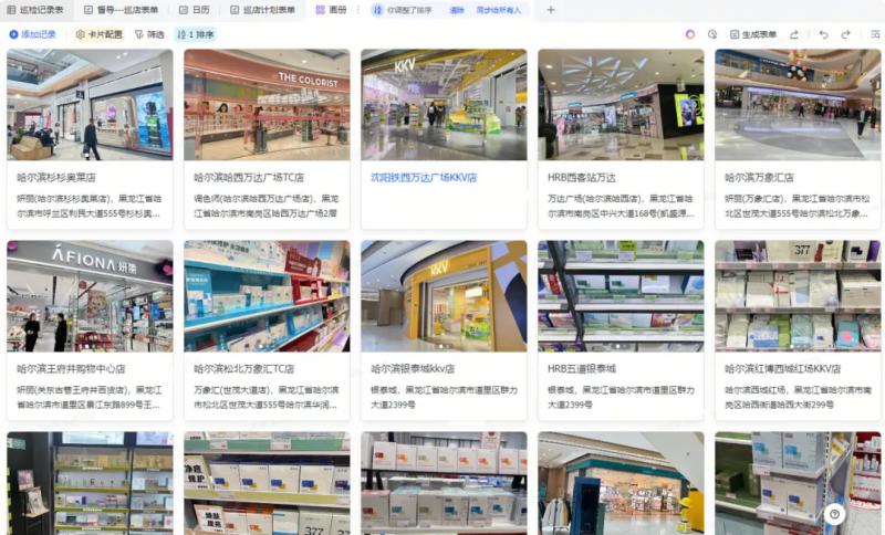 線下巡店工作能最大程度保障各終端貨品銷(xiāo)售質(zhì)量。過(guò)去,由于巡店工作涉及外出出差,巡店照片數(shù)據(jù)手機(jī)端無(wú)法操作整理匯總,影響問(wèn)題處理時(shí)效且增加無(wú)用工作量?,F(xiàn)在敷爾佳運(yùn)用飛書(shū)表單移動(dòng)端操作,隨時(shí)上傳巡店結(jié)果及照片,表格儀表盤(pán)視角可以查看數(shù)據(jù)并進(jìn)行一段時(shí)間內(nèi)的環(huán)比、同比分析,基于數(shù)據(jù)分析做任務(wù)下達(dá),一次巡檢從發(fā)現(xiàn)問(wèn)題到整改問(wèn)題的全流程都能包攬,對(duì)于每位巡檢員來(lái)說(shuō),每天至少節(jié)省2.5小時(shí)數(shù)據(jù)統(tǒng)計(jì)時(shí)間,同時(shí)更清晰的了解每個(gè)督導(dǎo)的外出工作情況 。此外,查貨溯源沒(méi)有系統(tǒng)的數(shù)據(jù)存檔,多個(gè)渠道數(shù)據(jù)無(wú)法同步,無(wú)數(shù)個(gè)sheet篩選查詢(xún)數(shù)據(jù),容易出錯(cuò)。現(xiàn)在,運(yùn)用多維表格協(xié)同操作,多個(gè)維度查看所需數(shù)據(jù),所有查貨情況能被沉淀和實(shí)時(shí)查看。