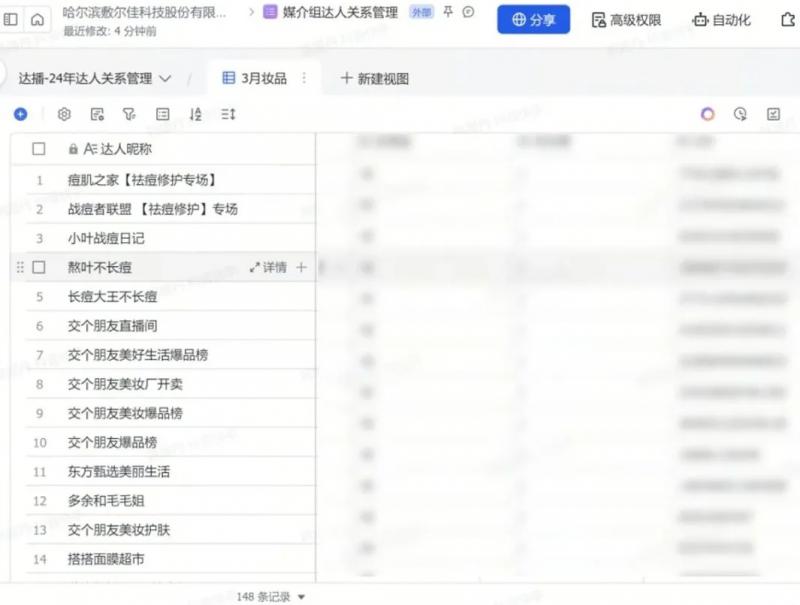 由于器械字號(hào)產(chǎn)品的特殊性,現(xiàn)在敷爾佳通過(guò)飛書(shū)在線文檔審批達(dá)人,將達(dá)人數(shù)據(jù)填寫(xiě)上報(bào),上級(jí)在線同步審批達(dá)人,跟進(jìn)確定合作。直播中,用飛書(shū)云盤(pán)儲(chǔ)存資料,將達(dá)播錄屏,產(chǎn)品資料等數(shù)據(jù),同步云盤(pán),方便各部門(mén)查看,調(diào)取相關(guān)資料。直播后,利用飛書(shū)多維表格將達(dá)人信息,合作傭金,產(chǎn)出 GMV,對(duì)接人等重要信息歸攏一起,形成多維表格方便組織內(nèi)互相查閱填寫(xiě), 通過(guò)儀表盤(pán)的功能體現(xiàn)出哪些達(dá)人是優(yōu)質(zhì)合作達(dá)人,并為二次投放合作提供了參考價(jià)值。