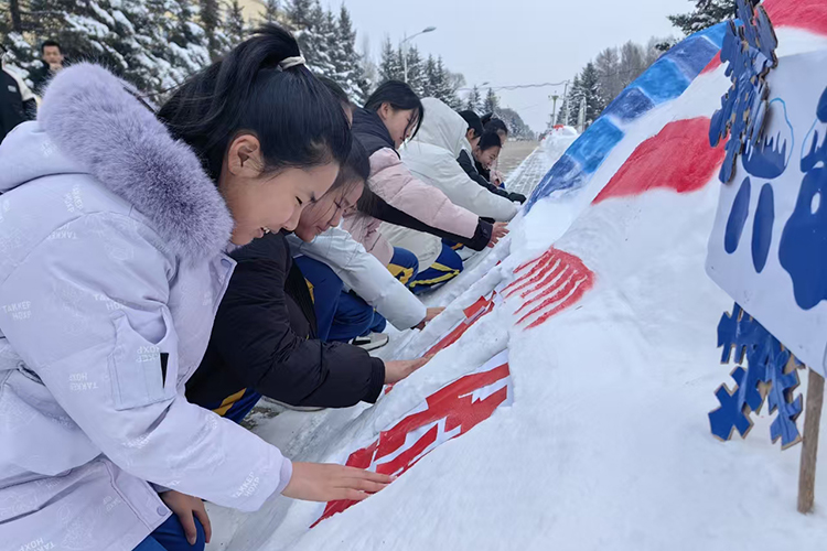 在銀裝素裹的校園里,師生們充分發(fā)揮想象力和創(chuàng)造力,一起堆雪、塑型、裝飾,在制作過程中,他們紛紛拿起手中的工具,鏟、挖、雕、刻,全神貫注地投入到雪雕創(chuàng)作中。轉(zhuǎn)眼間,一個(gè)個(gè)形態(tài)各異、栩栩如生的雪雕作品誕生,為冬日的校園增添了一份別樣的詩情畫意,也飽含著全體師生對(duì)亞冬會(huì)的美好祝福和對(duì)冰雪運(yùn)動(dòng)的熱愛。