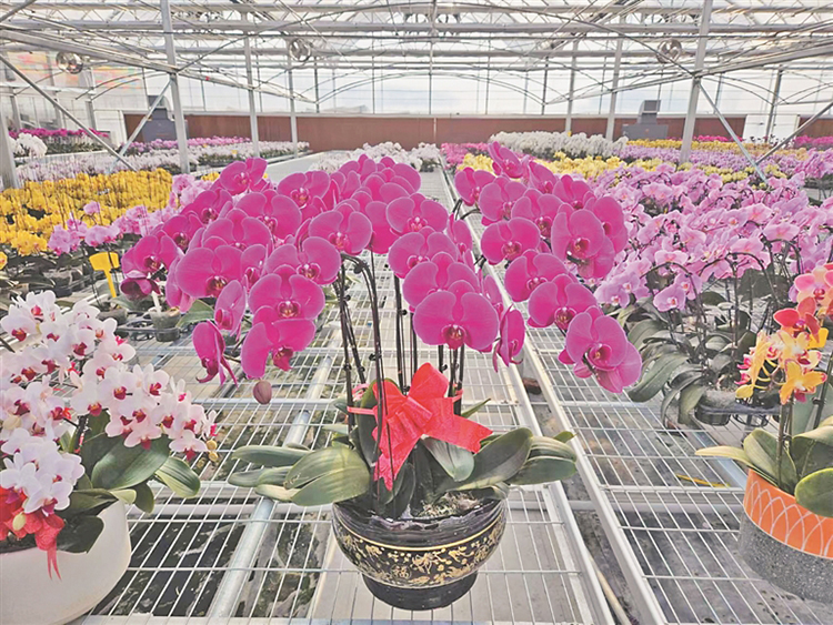 哈爾濱市道里區(qū)榆樹鎮(zhèn)新鄉(xiāng)村的現(xiàn)代化花卉溫室大棚內(nèi),上百種色彩艷麗的蝴蝶蘭花含苞待放,它們將在12月底陸續(xù)上市,裝點市民的生活。哈爾濱花間集農(nóng)業(yè)科技有限公司負責(zé)人劉鵬說,這里采用新型雙層膜充氣聯(lián)動溫室培育種植蝴蝶蘭等花卉苗木。采取“公司+基地+農(nóng)戶”的合作模式,蝴蝶蘭年產(chǎn)量可達30萬至40萬株,2023年全年實現(xiàn)毛利潤400萬至500萬元。