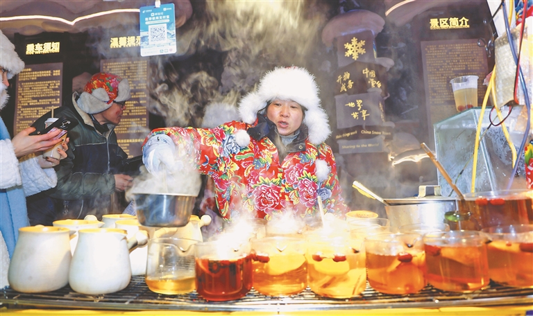 12月20日,黑龍江雪鄉(xiāng)國家森林公園景區(qū)內(nèi)人潮涌動。各地游客在雪韻大街、夢幻家園等處,觀賞夢幻雪景,打卡拍照。據(jù)工作人員介紹,目前景區(qū)已進(jìn)入客流高峰期,日均接待游客近兩萬人次。