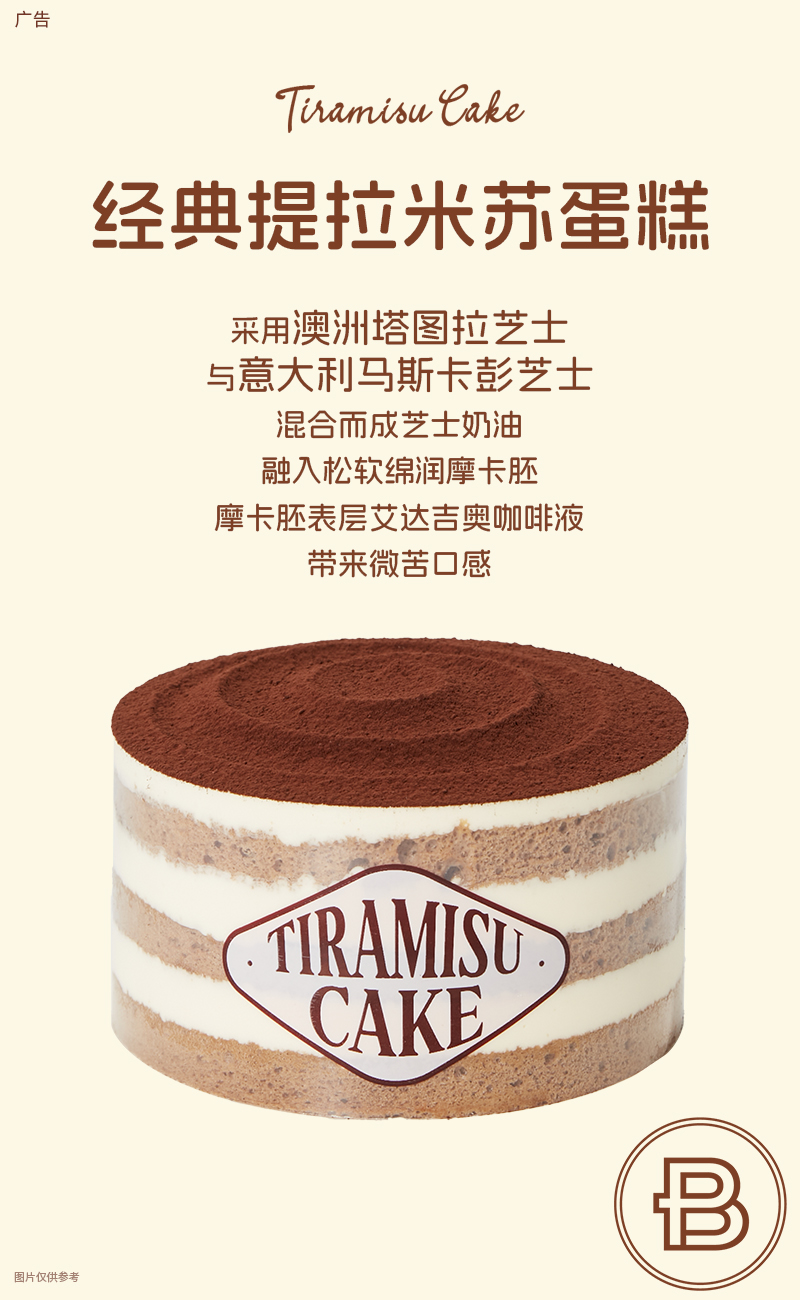 提拉米蘇,這個(gè)意大利甜品以“帶我走”之意為名,象征著溫暖與幸福。巴黎貝甜提拉米蘇蛋糕在傳統(tǒng)制作基礎(chǔ)上,融入創(chuàng)新匠心:
