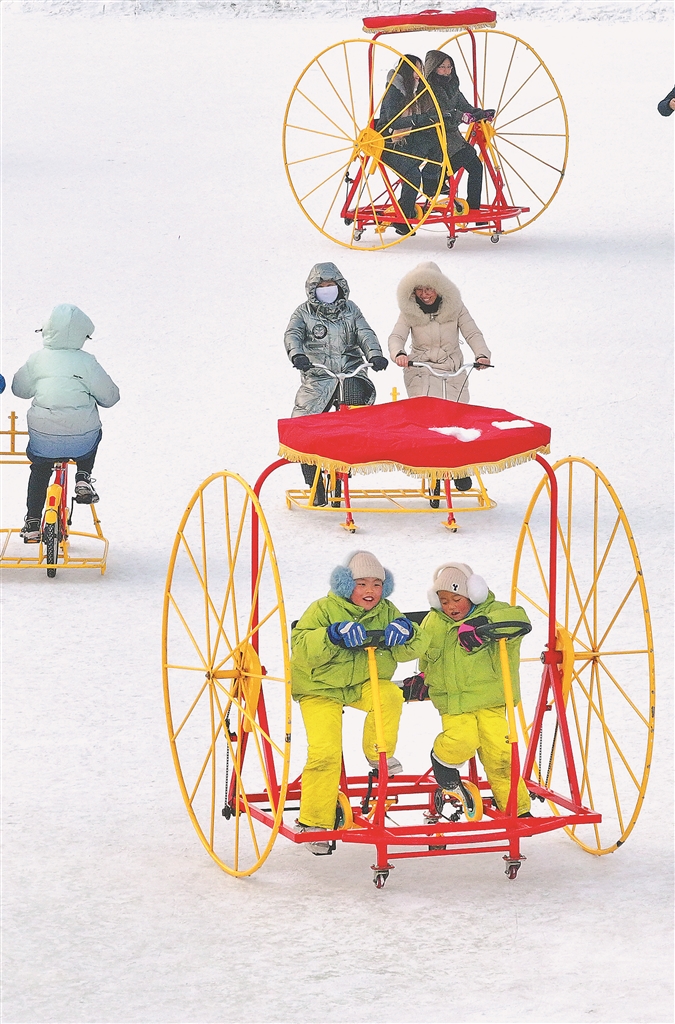 1月29日,大年初一,哈爾濱太陽島雪博會(huì)園區(qū),游人如織。孩子們?cè)诩议L的帶領(lǐng)下,坐雪圈、騎冰上自行車,玩冰戲雪,歡樂融融。省博物館展廳內(nèi),懸掛了紅燈籠、紅條幅,許多市民、游客在參觀學(xué)習(xí),打卡拍照,體驗(yàn)傳統(tǒng)民俗。
