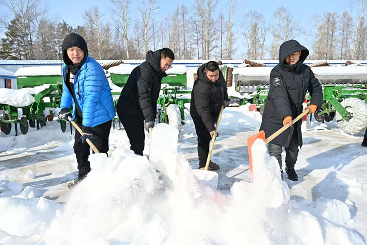 “眼下天氣逐漸回暖,為了避免氣溫上升造成積雪融化而形成冰層,影響后續(xù)工作,我們采取鏟車清雪、人工清邊的措施,確保將農(nóng)具場積雪徹底清理干凈,為農(nóng)機(jī)具檢修提供良好環(huán)境。”管理區(qū)工作人員說。
