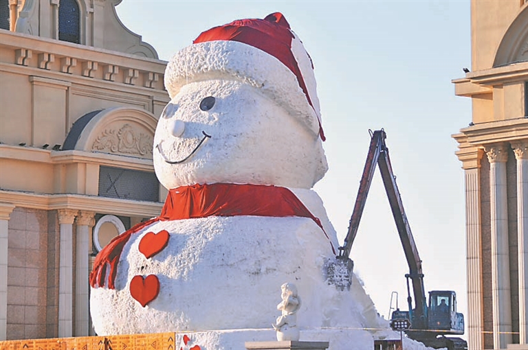 “大雪人”拆除中。本報(bào)記者 蘇強(qiáng)攝