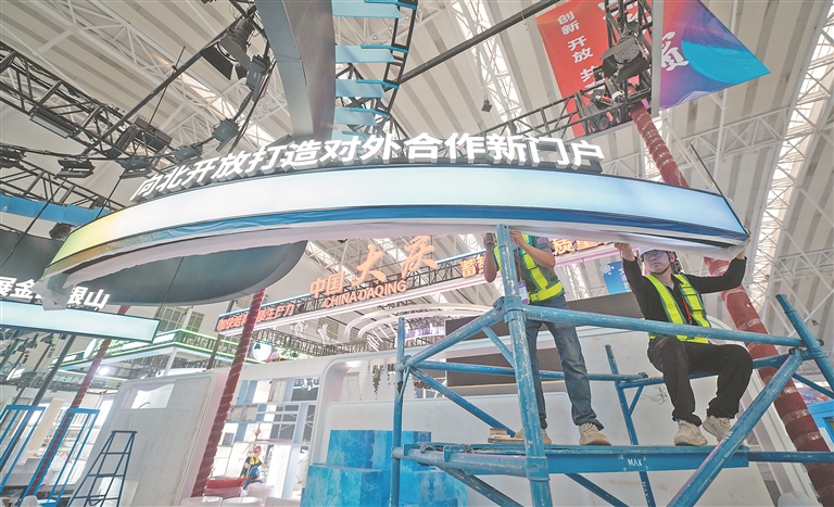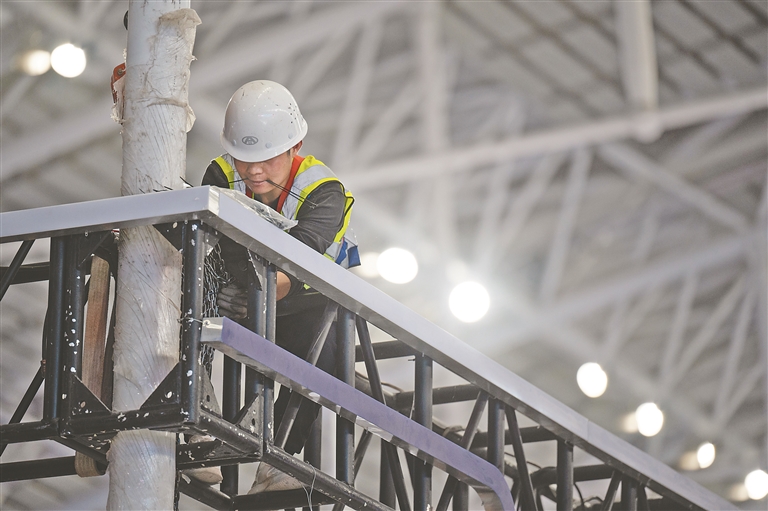5月14日,距離哈洽會開幕還有三天時(shí)間,記者來到第34屆哈洽會展館施工現(xiàn)場,各區(qū)域展臺已搭建成型,施工工人們正在有條不紊地裝飾展區(qū)細(xì)節(jié)部分。