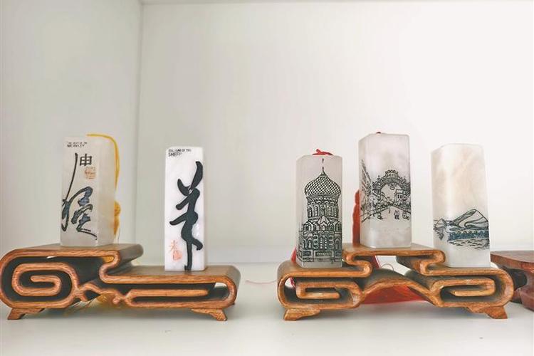 新區(qū)創(chuàng)意設(shè)計(jì)產(chǎn)業(yè)園與林大合作開發(fā)的凍石文創(chuàng)刻章。