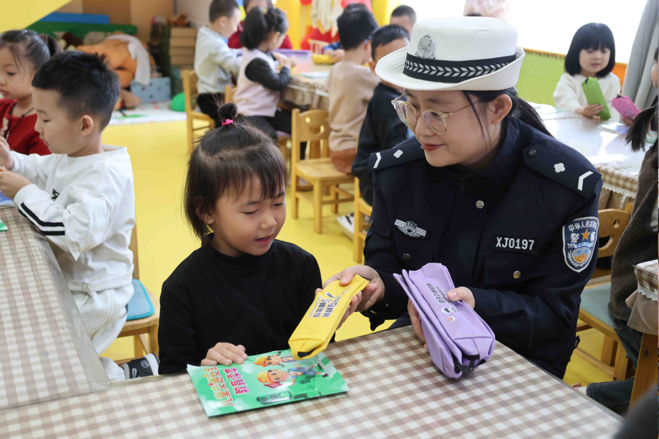 活動(dòng)中,民警結(jié)合幼兒認(rèn)知特點(diǎn),將枯燥的交通法規(guī)轉(zhuǎn)化為生動(dòng)有趣的互動(dòng)形式,通過發(fā)放安全宣傳圖冊、粘貼海報(bào)、播放交通安全卡通動(dòng)畫等寓教于樂的形式,用通俗易懂的語言向孩子們普及信號燈通行規(guī)則、過馬路走斑馬線及冬季出行安全知識和注意事項(xiàng),進(jìn)一步提升師生的安全出行意識和守法意識。同時(shí),持續(xù)強(qiáng)化“小手拉大手”示范引領(lǐng)作用,積極鼓勵(lì)孩子們當(dāng)起家庭“交通安全監(jiān)督員”,將活動(dòng)中學(xué)到的交通安全知識傳遞給父母,提醒家長冬季出行要做到不酒駕、不超速、乘車系好安全帶等出行注意事項(xiàng),時(shí)刻督促家人養(yǎng)成良好出行習(xí)慣。