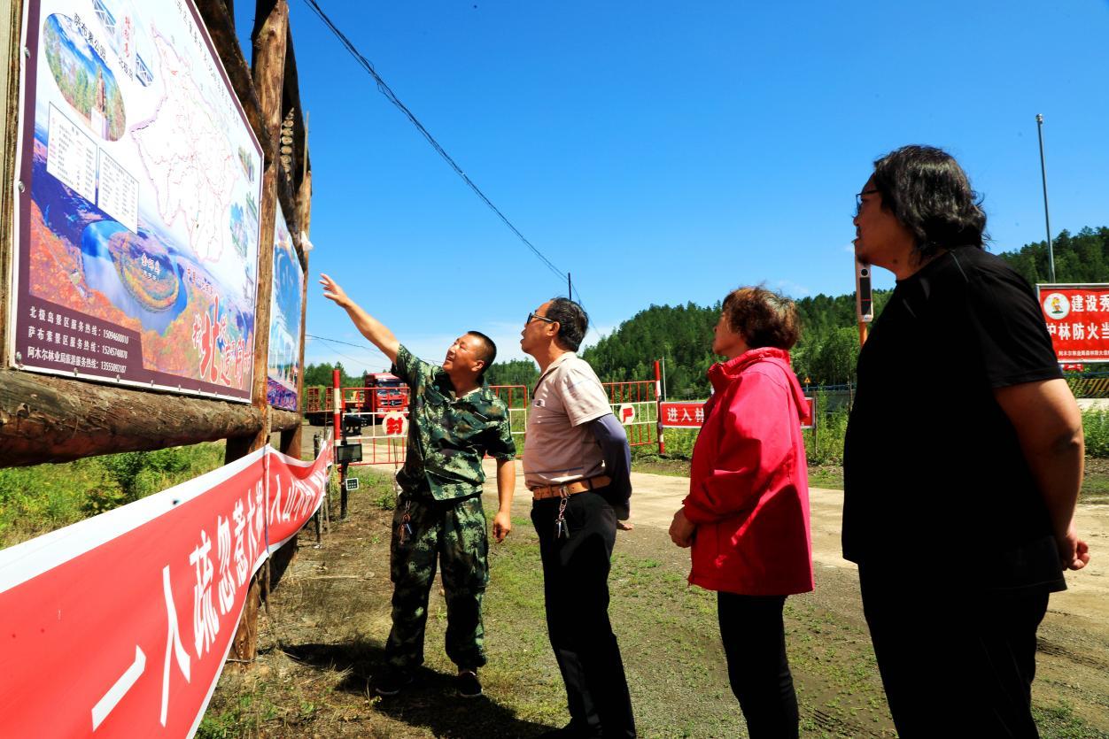 阿木爾林業(yè)局1—21線(xiàn)管護(hù)員李瑞向游客介紹旅游景點(diǎn)(王力 攝)