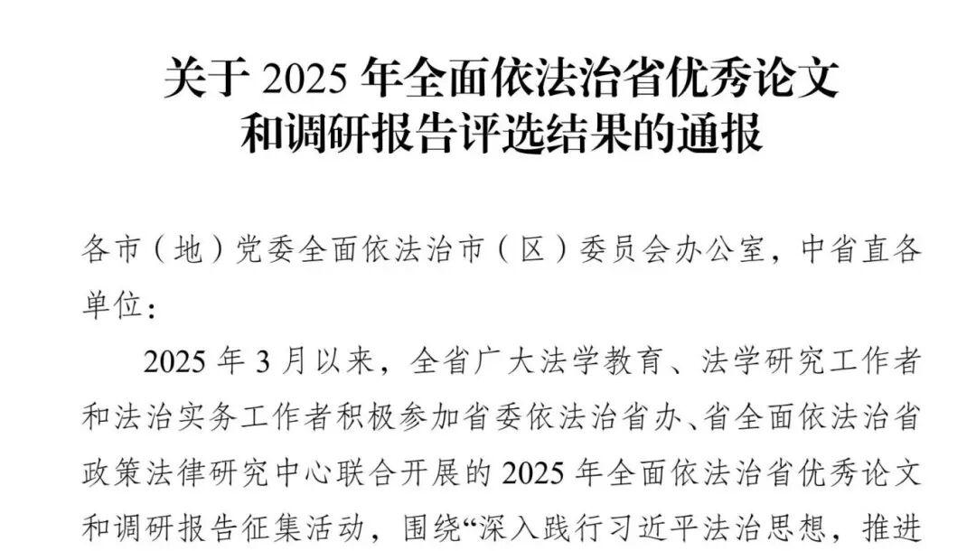 黑龍江經(jīng)濟(jì)網(wǎng)訊(董慧瑩 李雪松)近日,省委依法治省辦印發(fā)《關(guān)于2025年全面依法治省優(yōu)秀論文和調(diào)研報(bào)告評(píng)選結(jié)果的通報(bào)(黑法辦發(fā)〔2025〕10號(hào))》,公布最終評(píng)選結(jié)果。本次評(píng)選活動(dòng)共征集論文1370篇,經(jīng)初評(píng)復(fù)審,共有465篇論文進(jìn)入終評(píng);經(jīng)學(xué)術(shù)不端檢測(cè)、評(píng)委會(huì)認(rèn)真審閱,最終評(píng)選出獲獎(jiǎng)?wù)撐?86篇。肇東市人民法院報(bào)送參評(píng)論文8篇,共有3篇獲獎(jiǎng)。