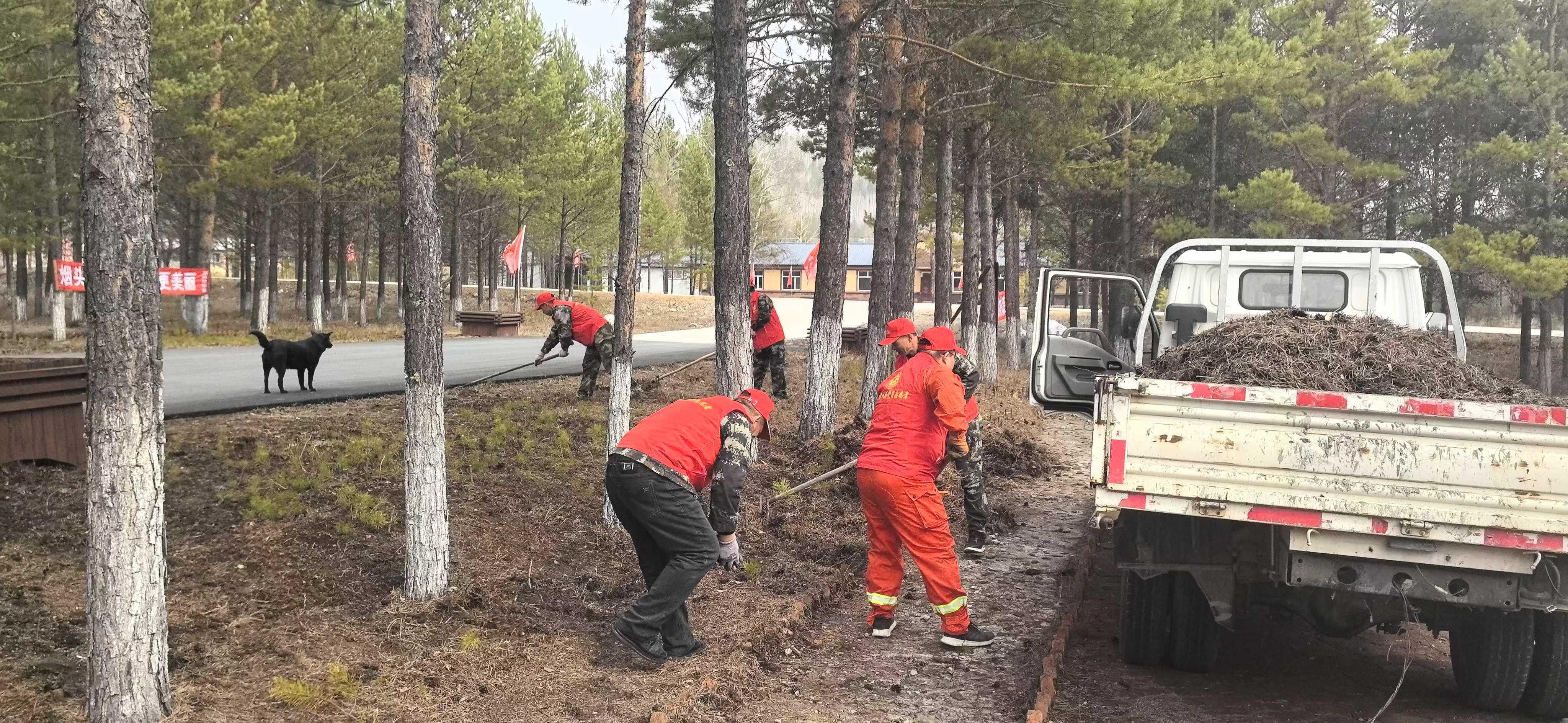 精雕細琢,提升林場顏值。林場聚焦影響環(huán)境衛(wèi)生的突出問題開展集中整治,定期組織干部職工清理場區(qū)垃圾雜物、道路兩側枯枝樹葉及綠化帶雜草,2年來累計清運 70 余車;同時疏通排水溝 1000 余延長米,調動鏟車、翻斗車等設備修繕坑洼破損道路 20 余處,徹底解決了道路低洼不平、雨天泥濘難行的問題。落實居民住戶門前環(huán)境治理責任,做到無垃圾雜物、無亂堆亂放、無亂搭亂建,確保不留衛(wèi)生死角盲區(qū)。組織機關干部在辦公室庭院廣場新種杜鵑綠化隔離帶100余延長米,場容場貌煥然一新。