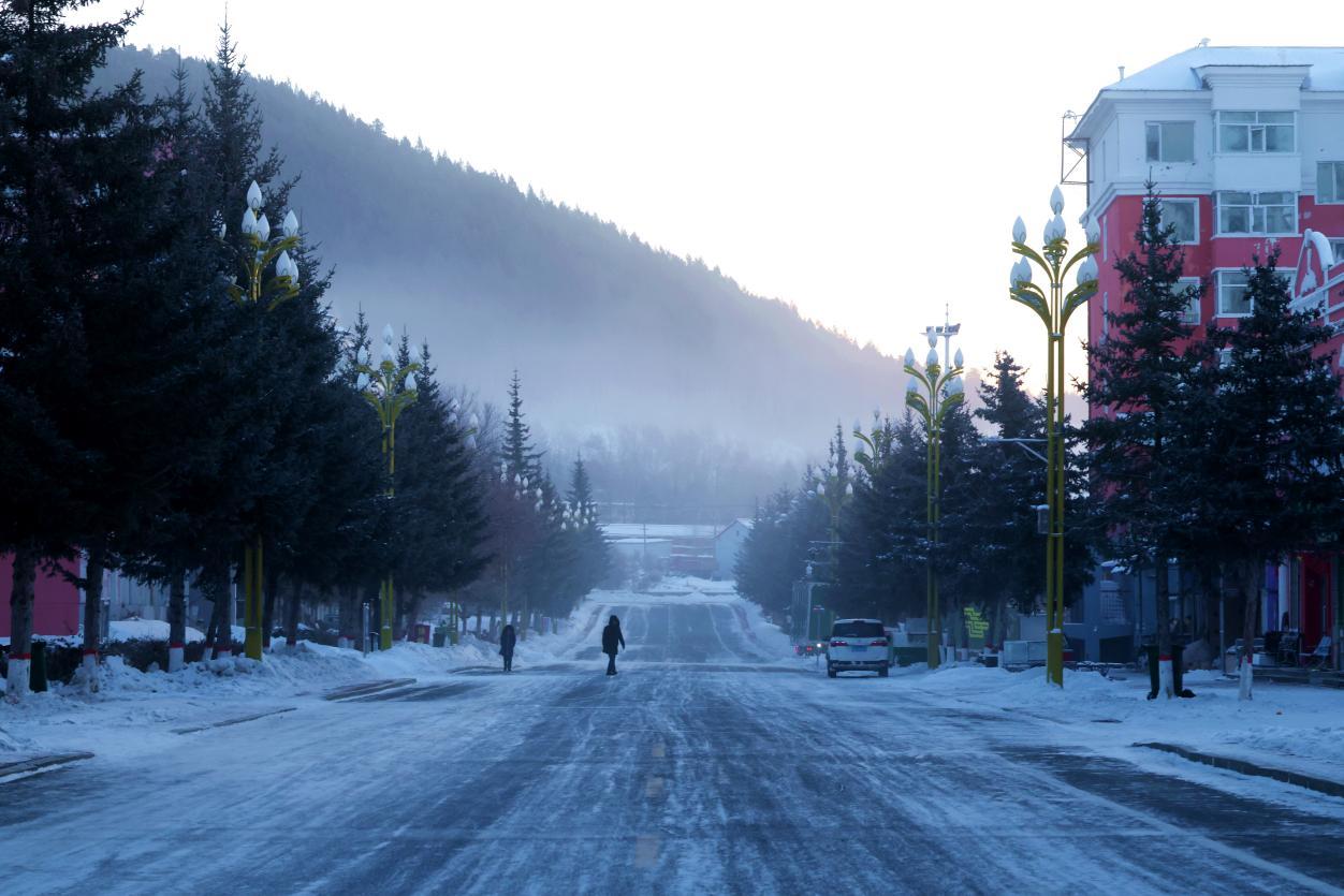 極寒天氣下的阿木爾林業(yè)局街道(王力 攝)