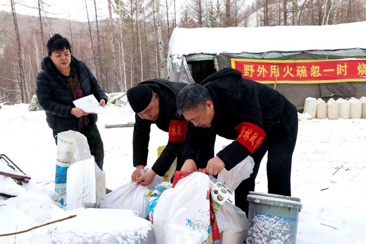 阿木爾林業(yè)局督導(dǎo)檢查組突擊檢查野外作業(yè)點凍貨存放點,檢查是否有野生動物制品(王力 攝)