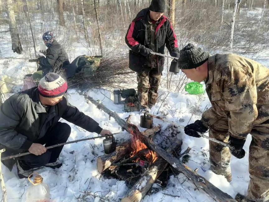 餐風(fēng)飲雪不言苦,苦中作樂(lè)顯擔(dān)當(dāng)。正午時(shí)分,忙碌的作業(yè)暫告一段落,林間背風(fēng)處便成了臨時(shí)“餐桌”。職工們聚在一起,圍坐在火堆旁,就著寒風(fēng),分享著熱氣騰騰的盒飯。沒(méi)有舒適的就餐環(huán)境,只有白雪皚皚的林海作伴;沒(méi)有豐盛的佳肴,只有簡(jiǎn)單的飯菜暖胃暖心。大家邊吃邊聊,交流著當(dāng)天的作業(yè)進(jìn)度,分享著林區(qū)里的新鮮事,爽朗的笑聲回蕩在林間。艱苦的條件絲毫沒(méi)有消減大家的干勁,反而凝聚起攻堅(jiān)克難的強(qiáng)大合力,這便是育英林場(chǎng)人獨(dú)有的“苦中作樂(lè)”,更是對(duì)綠水青山的執(zhí)著堅(jiān)守。